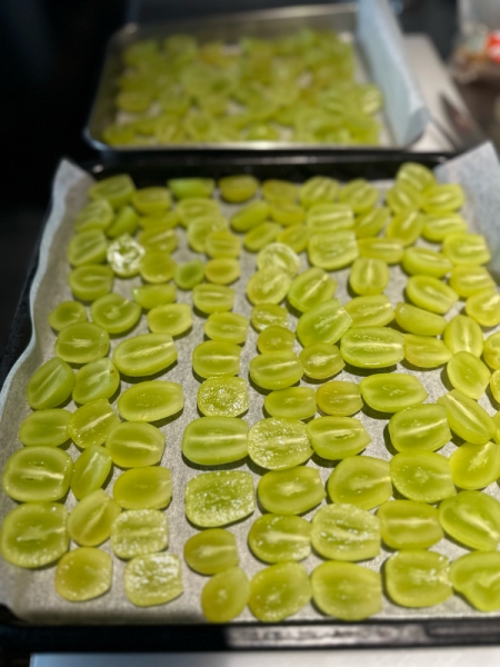 シャインマスカット 2025-08-19 11:10:39 シャインマスカット、前菜に使ったり、今だけの季節限定のデザートにも使います。生のシャインマスカットを乾燥させて、レーズンにして、ラムレーズンのアイス作ります。アルコール感のある大人のデザートです。9月、10月のご予約承っております。ネット予約も可能ですが、詳しい内容、ご相談等ございましたら、お電話にてお問い合わせください。ご予約お待ちしております。